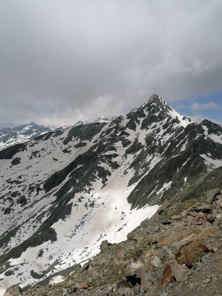Nous avons commencé facilement par une ascension en remontées mécaniques à 3000 m. Nous sommes ensuite descendus jusqu’au Gaislachersee à 2700 m, qui ressemble à un cœur vu d’en haut. Des blocs de glace y flottaient encore, signe d’un printemps frais, mais cela n’empêcha pas John de s’y baigner. Au total, 3 heures de marche et un bon début pour ces courtes vacances. De la pluie et des vents violents étaient annoncés pour le lendemain.