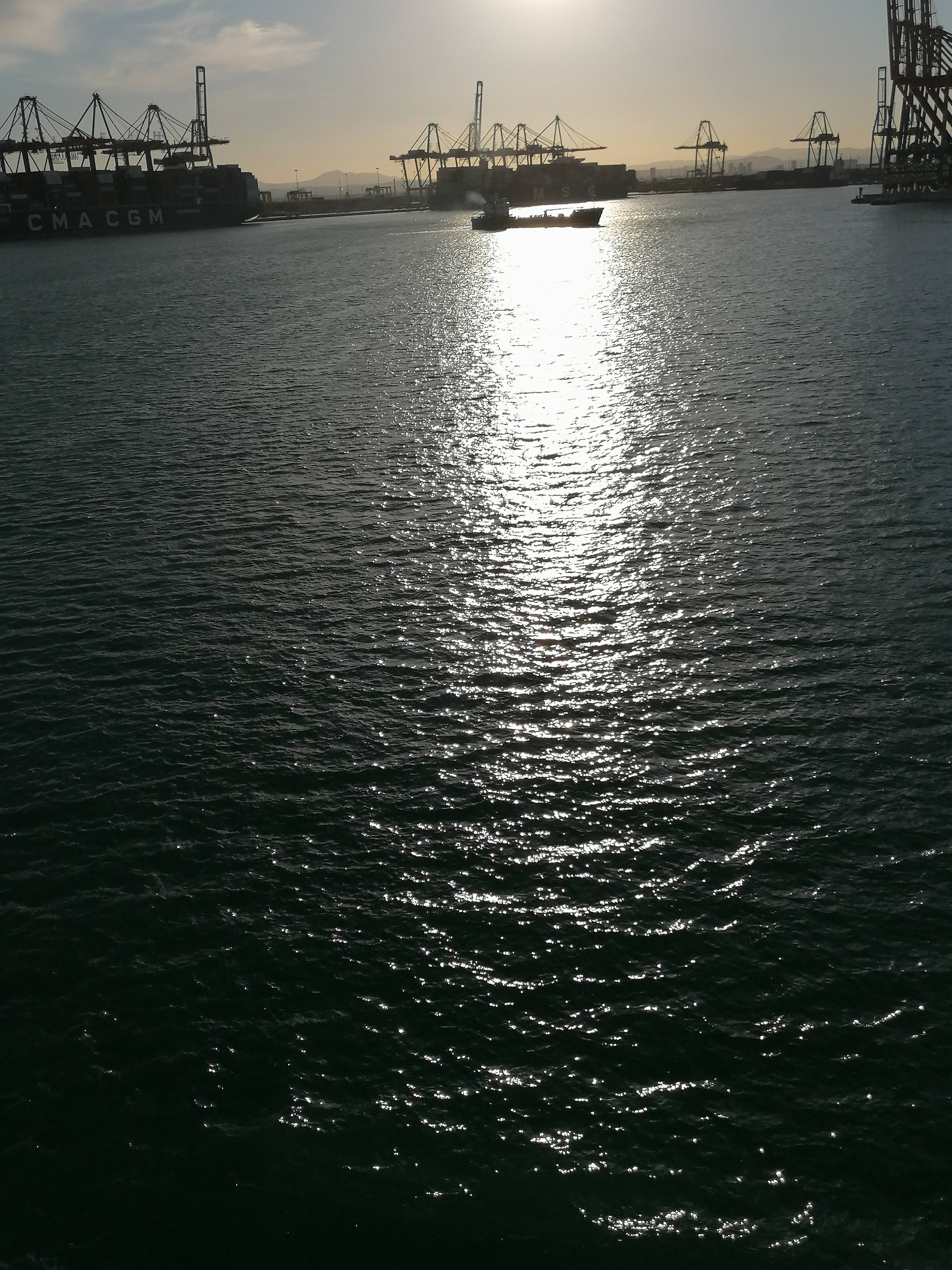 Le voyage s’est très bien passé, le ferry n’avait que peu de passagers, on pouvait se promener et nous avons passé deux heures à lire dans les chaises-longues sur l’un des ponts. Nous avons pu admirer la côte de l’île, sommes passés au nord d’Ibiza avant d’arriver dans le port de Valence, où il y avait des cargos énormes et des ferrys.