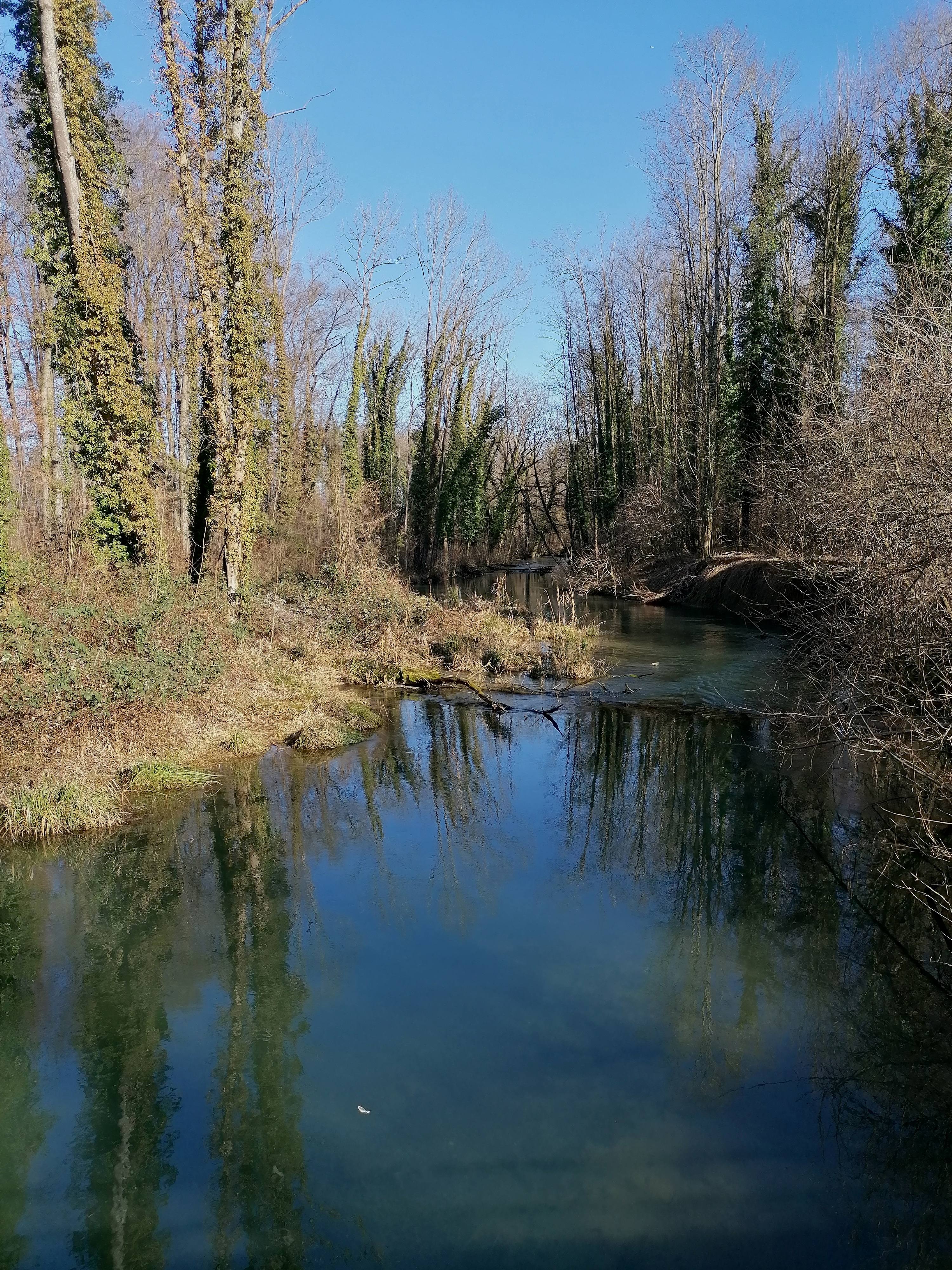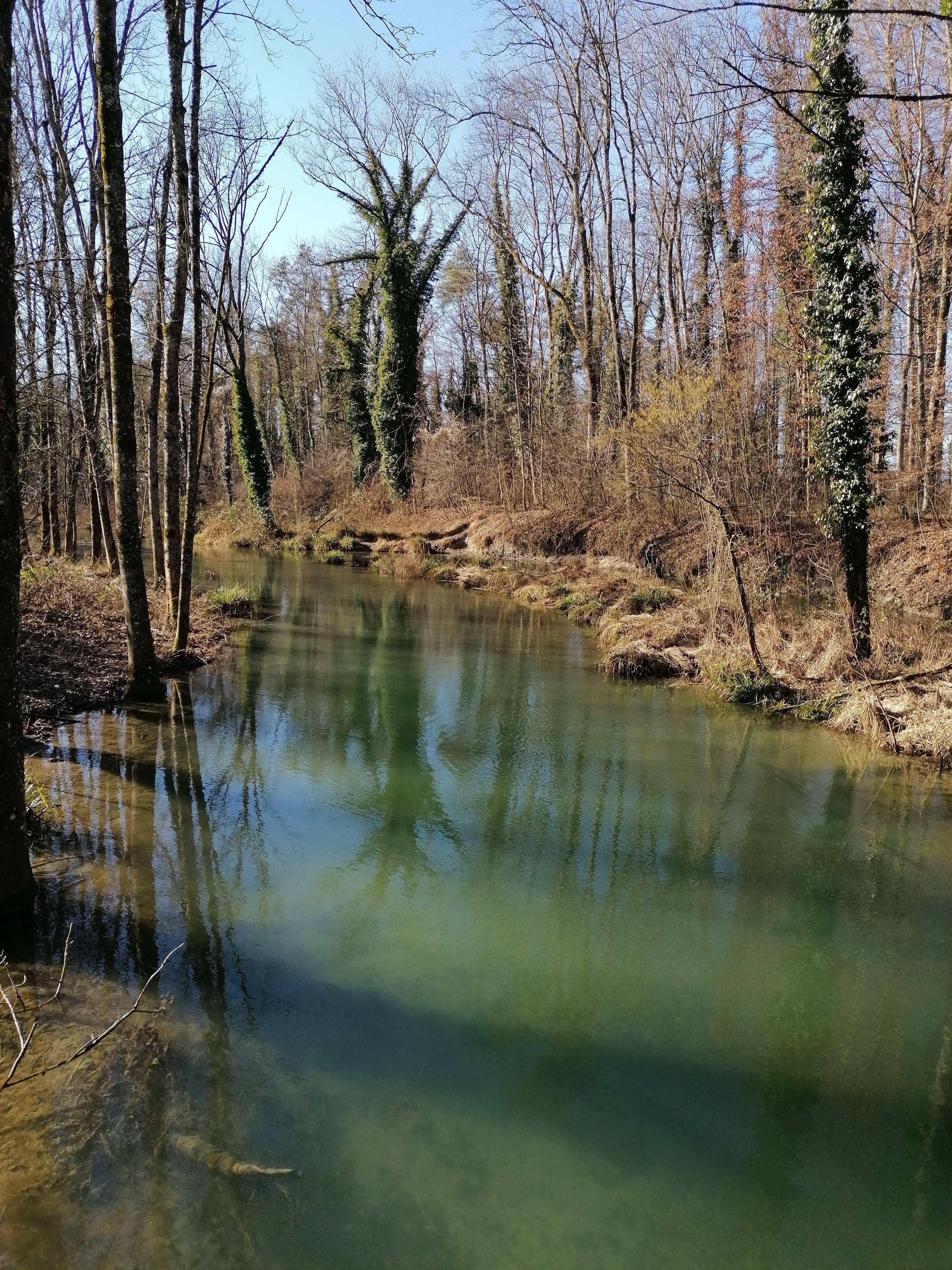 We found out about this path accidentally as we went for a walk from Aarberg to Büren an der Aare along the Old Aare. The river was prone to flooding the area until a major canalisation project redirected it to Lake Bienne in the second half of the 19th century. The Old Aare is now a natural reserve and the beautiful old bridge of Aarberg seems very long for such a small river. After a couple of kilometres, we were close enough to the freeway for about an hour to hear its constant hum. We were surprised to see many maritime pine trees, which gave an air of warmer climates and even crossed a suburb that looked quite Spanish.