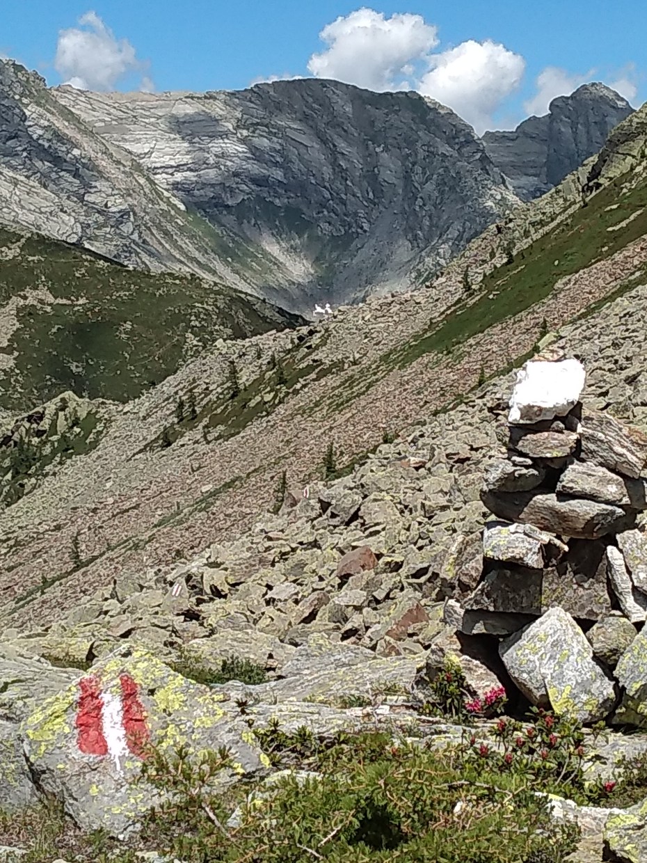 Day 1 I had a late start from Cruina. Leaving Geneva at 35° I was surprised by how much snow there is on the passes. Finding your way is harder, and slower. We had hiked the Griespass a few years ago and were surprised by the aeolian. Now there are 4. Just beyond the pass is a tiny chapel / shelter. In the early 50’s 9 scouts went hiking in perfect weather; 6 came back. As adults, those 6 built the chapel in memory of their friends. Now it is well maintained. I had expected to make it to the next refuge, but was behind schedule. Alpe Nefelgiù was a welcome sight. A stone hut with an elevated wooden platform to sleep on, shelter from the weather; luxury can take on different meanings. I slept well. Day 2 The hut was dark, so I slept in and had a late start. The day started with sunshine, but became overcast. Hiking up the pass was hard, so I was glad I had stopped the previous day. With the snow, the descent was a challenge. Arriving at the refuge it was good to have a simple lunch. John Day 3 The refuge Margaroli, where I stayed, was very friendly. The food was good and I met a few people hiking the same route. The path starts along a lake where many spring flowers are in bloom. I never tire of their beauty. Maybe the long flat stretch allowed me to warm up, but the climb was easier, and I felt I hit my stride. At the “Scatta Minoia” pass I met a group sheltering in a big hut, “Bivacco Ettore”. I have not seen many shelters at the top of a pass. Painted bright red and white it must be easy to see in fog. We all started the long descent together but quickly spread. Snow still covers a lot of the pass. The trail goes the length of lake Devero before reaching Crampionlo. The village has been renovated, renewing the stone_roofed buildings. Alpe Devero is the end of today’s walk. It is larger and more spread out, with many beautiful stone buildings. John Day 4 Leaving Alpe Devero I passed through a group of stone buildings and up a forest path. I came upon a flock of sheep with some goats mixed in. I watched the shepard lead his sheep to a spur; he whistled and they all followed. The path goes through a wide bassin that is soggy due to the late snow. The first pass, Scatta d’ Orogna, had the tamest goats I have met: I turned for a photo but had to swing around and pull away a goat that wanted to eat my backpack. After the descent, walking along the side of a lake in snow, I came to a critical point; I was with a couple of other hikers. The original pass around the cliff face had been damaged by an avalanche in spring. A detour had been built, which meant a long climb down then back up over snow. Six Italians went along the original path and assured us it was safe enough. We decided to follow them. Parts of the path are not even; shards of rock bigger than me are scattered across it. At the second pass, Passo Di Valtendra, we were hit by the wind. We retreated below the pass to take off our backpacks. A couple of minutes at the top for photos were enough. Then I put on my wind jacket, gloves and beanie for the walk down the snow on the other side. Beyond the snow it warmed up as I descended through a forest. Alpe Veglia was the end-point, with a friendly refuge. John Day 5 Today I walked alone yet had some interesting encounters. The terrain was more agricultural. Philippe took one look at me and recognised a like-minded hiker: light shoes and pack, equipped to be independent. He had not got the memo and was walking south to north; most of us are going the other way. His aim is performance and he has walked in 30 days what my book suggests takes 60 days. We exchanged information about good bivouacs and restaurants, then got onto hard-core equipment issues. He even put up his super-light tent, one I have considered many times. Am I going to buy it ….. I do not know how long we talked, but it was fun. On the other side of the pass I came to a road. Although it looked like nobody drove it, I decided to follow it and hitch-hike. Angela gave me lift. We chatted between French and Italian. When we arrived at Varzo, I appreciated the ride all the more because it was a long way. I went to Varzo only to get cash. Leaving was a challenge: no bus, no train, and no easy walk. Nobody offered me a lift either. I walked along the road until it joined the main road. Suddenly I was in a bad place. This road was very narrow with barriers on both sides, lots of fast two-way traffic, and a tunnel ahead; walking it was not an option. Going backwards was not easy either. A speeding small blue car pulled out of the stream and braked hard in front of me. “I saw you were in a bad place and decided to give you a lift”, she said. We chatted easily and she drove me all the way to the Hospice de Simplon. Where I ended up having a glass of wine and sharing stories with a senior Swiss politician (whom I had not recognised). A good day for meeting people. John Day 6 This is a planned rest day at the Hospice de Simplon. I awoke to find it had snowed. John Day 7, 16 July 2019 My stay at the Hospice was pleasant and restful, but I was already restless to be back on the trail. The postal bus took me to Gondo. There another bus was waiting to go to Zwischbergen. So I took that and saved myself 2.5 hours that I anticipated being dull. From Zwischbergen the hiking was through forest, not yet alpine terrain. Once I reached Tschawiner See it was more alpine. If John skinny-dips in an alpine lake and he does not take a selfie, did he make a splash? It was cold; I must be out of practise. At Rifugio Gattascosa a simple lunch of cheese and cold meats was good. Yet it was too early to stop, though the next stage is “easy” and 5 hours. So I decided to keep on; there are other places to stop. Philippe had mentioned a great bivouac. When I reached it I could not believe my eyes. It has all comforts, including a fire stove. I made a fire which took the edge off the chill. Lucas and I chatted to the small hours, mean